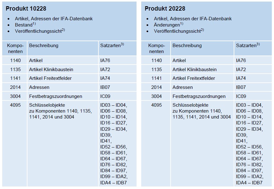 Beide Produkte enthalten alle Haupt-Objekte der IFA-Datenbank, also Artikel und Adressen, sowie die zugehörigen Schlüsselobjekte.