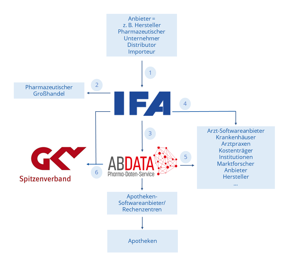 Die Information IFA-Datenbank und IFA-Informationsdienste beschreibt ausführlich den Datenfluss und die Aufgaben der IFA GmbH.